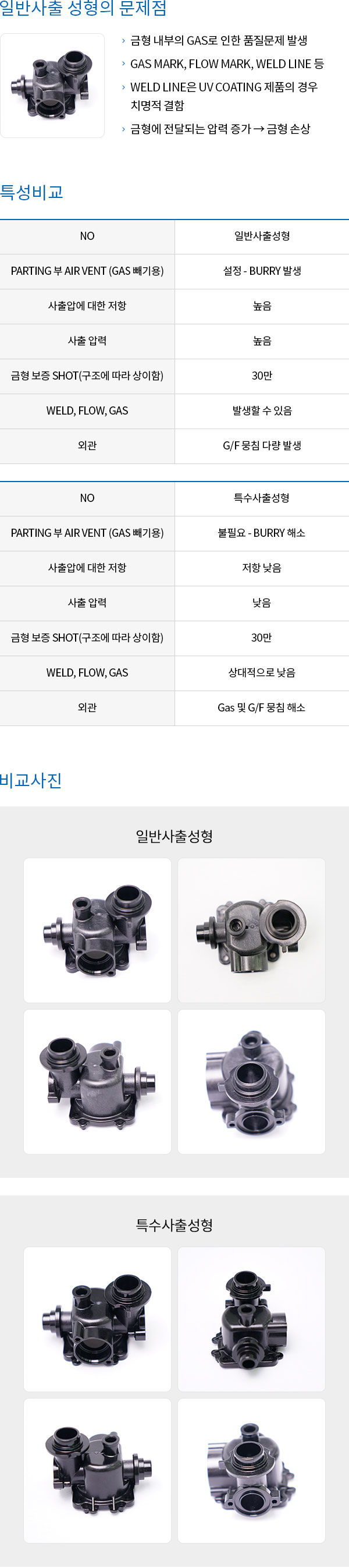 특수사출과 일반사출의 비교